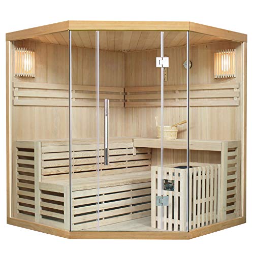 Finnische Sauna Hemlock-Tannenholz - 3 Etagenbänke Home Deluxe Skyline XL BIG Saunakabine inklusive komplettem Zubehör