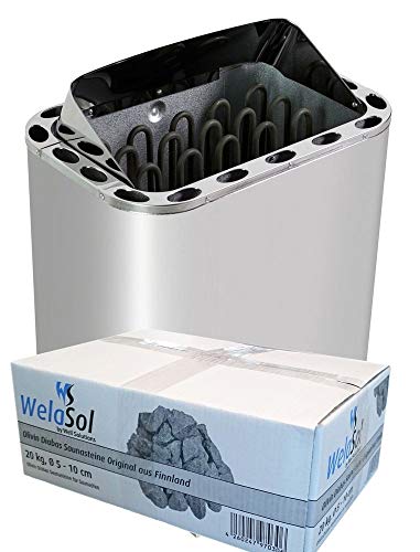 Elektro Saunaofen für Saunakabinen von 7 - 10 m³ Well Solutions® 34A Saunaofen 7,5 kW – Made in Germany – Edelstahl inkl. Steine