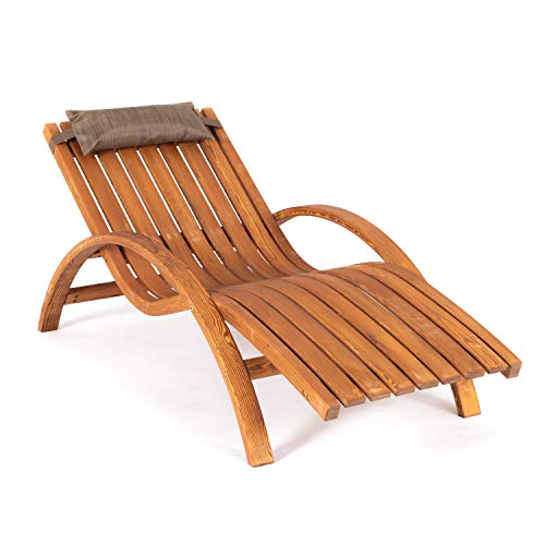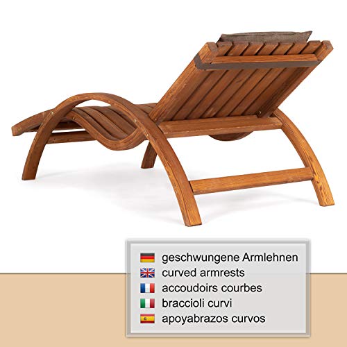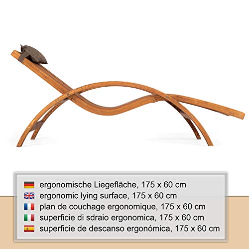 Genießen Sie den Liegekomfort des Stuhls an ihrem Lieblingsplatz auch ohne Auflagen | dekorative, stabile Sonnenliege ergonomisch geschwungen & rückenschonend, Wohltuende Entspannung im Garten oder auf der Terrasse | Holzgartenliege mit ergonomischen Armlehnen | individuelle Position des…