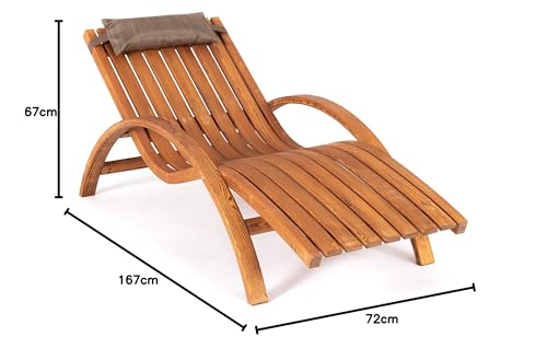 Ampel 24 Relax Liegestuhl Borneo, Relaxliege mit Armlehnen und Kopfkissen, Gartenliege komplett aus Holz, Stuhl mit Längslatten