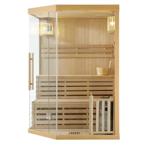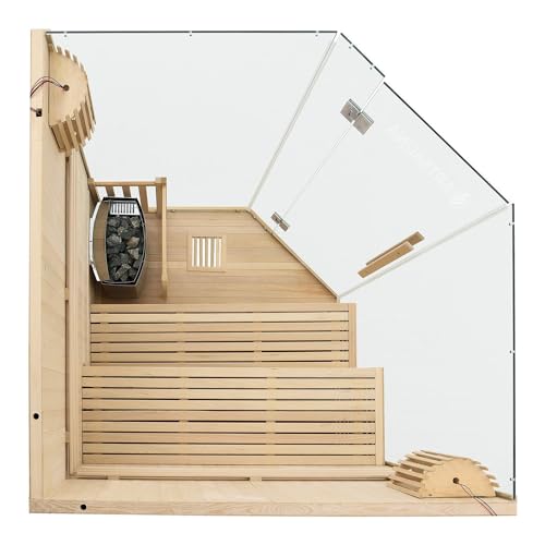 - ✅ Hitzebeständige Glasfront: Sauna mit großer, eckiger Glastür für absolute Entspannungsmomente. Starkes, hitzebeständiges Sicherheitsglas mit 8mm Dicke. Einfache Reinigung und pflegeleicht.