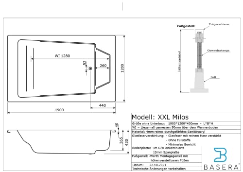 Tauchen Sie ein in pure Entspannung mit dem Basera® Classic Indoor Whirlpool Badewanne XXL Milos für 2 Personen. Dieses Komplettset mit zahlreichen Extras und Zubehör bietet Ihnen ein Wellness-Erlebnis der Extraklasse. Die optimierte Raumsparwanne ermöglicht ein bequemes und wassersparendes Badeerlebnis, während leistungsstarke Wasserdüsen für eine wohltuende Massage sorgen. Die hochwertige Verarbeitung garantiert optimale Wärmespeicherung und ein angenehmes Hautgefühl. Mit „Made in Germany“ Qualität und langjähriger Ersatzteilverfügbarkeit können Sie sich auf Langlebigkeit verlassen. Maße: 190 x 120 x 62 cm, Fassungsvermögen: 320 Liter.