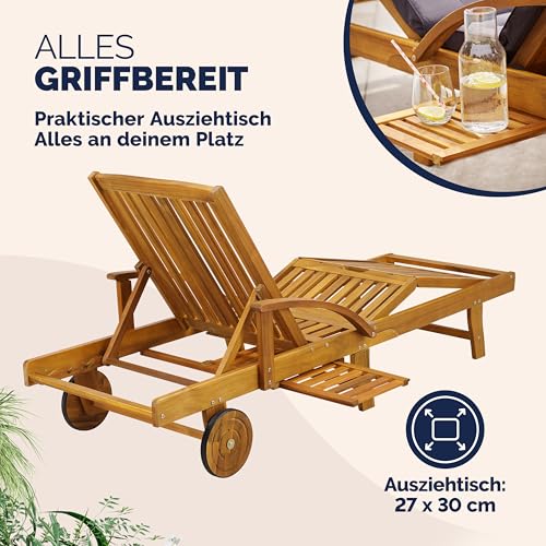 Casaria® Sonnenliege Holz klappbar Tami Sun 160kg Belastbarkeit Tisch ausziehbar Räder Akazie Garten Balkon Liege Klappliege Holzliege Liegestuhl