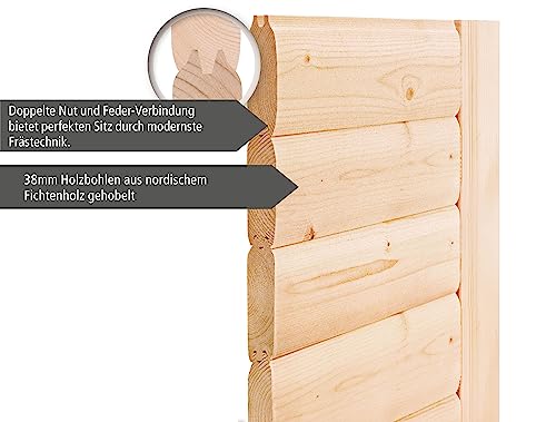 Chillroi® Karibu Saunahaus Helmi Gartensauna Outdoor Dampfkabine naturbelassen/terragrau optional mit Saunaofen (Naturbelassen ohne Ofen)