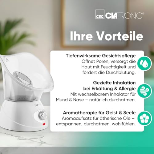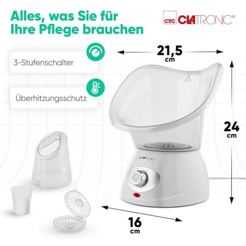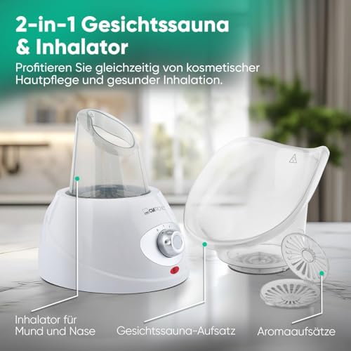 Clatronic® 2in1 Gesichtssauna und Inhalationsgerät | Face Steamer inkl. Aromaaufsatz & Inhalator | zur kosmetischen Gesichtspflege & Inhalation | 3-Stufen für bedarfsgerechte Dampfdosierung | GS 3656
