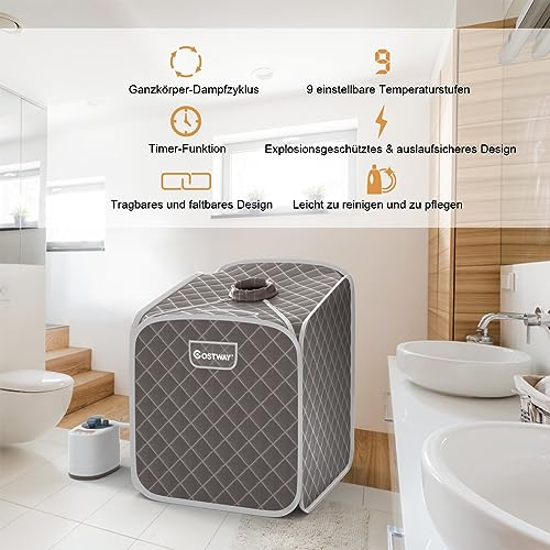 Entdecken Sie die COSTWAY 2L Mini Dampfsauna für eine privat und sicherheitsschutz Dampferlebnis. Mit 9 einstellbaren Temperaturstufen, schnellem Heizen und hochwertigem Material bietet sie Entspannung und Regeneration. Einfach zu tragen und inklusive komplettem Zubehör für ein professionelles Dampfbad zu Hause.