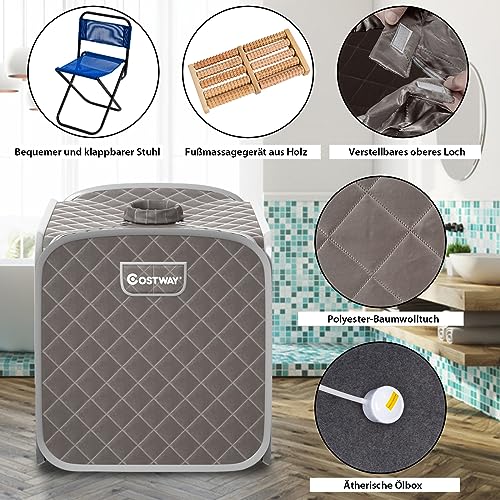 COSTWAY 2L Mini Dampfsauna, Heimsauna Wärmekabine mit Zerstäubungsfunktion & Timer & 9 Temperaturstufen, Sitzsauna inkl. Fernbedienung, Stuhl, Saunakabine 85 x 84 x 106cm (grau)
