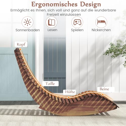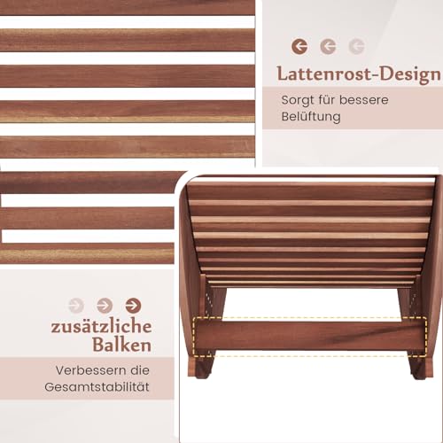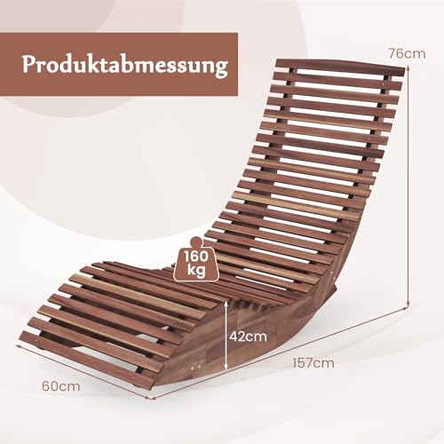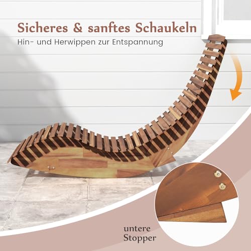 Genießen Sie die sanfte Schaukelbewegung und den ergonomischen Komfort unserer COSTWAY Sonnenliege aus robustem Akazienholz. Mit der Möglichkeit zur individuellen Gestaltung und breiten Anwendungsbereichen ist diese Liege perfekt für Ihren Außenbereich geeignet.