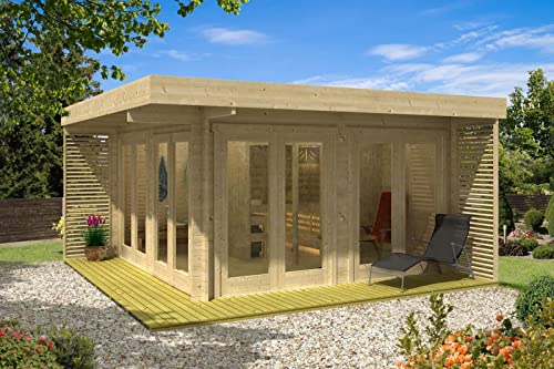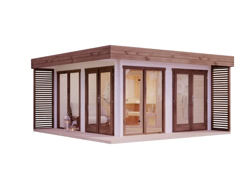 - MODERNES DESIGN: Gestalten Sie mit dem modernem Design der Außensauna, ihre ganz eigene Wellness Oase im Garten. Unterschützt wird das moderne Design durch das Flachdach und die Panorama-Tür.