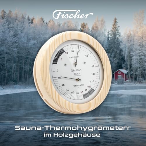 Fischer Sauna Thermometer und Hygrometer im Holzgehäuse Erzgebirge
