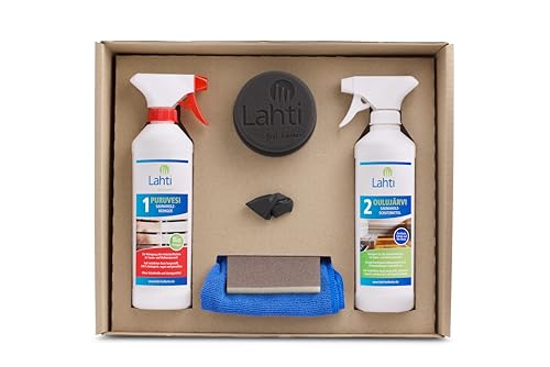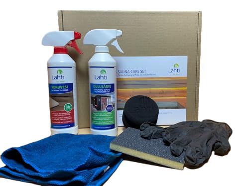 Lahti Sauna Care Set – Set für HolzSchutz, Reinigung und Pflege Ihrer Sauna – 1 PURUVESI, 2 OULUJÄRVI + Zubehör
