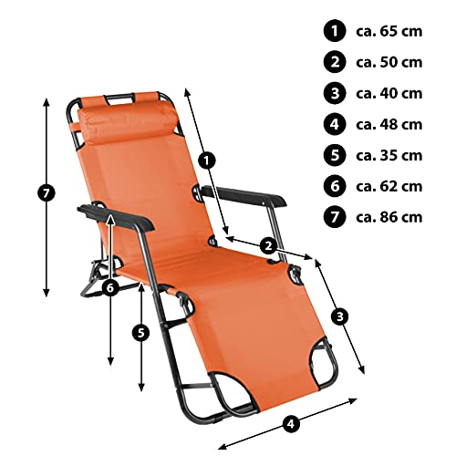 Nexos klappbare Sonnenliege Relaxliege Liegestuhl Klappliege Stahl (Orange)