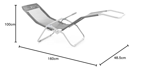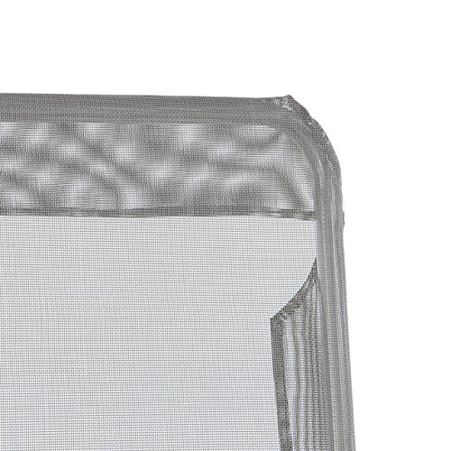 - Pflegeleichte 1×1 textilene Bespannung grau, stabiles graues Stahlrohrgestell, belastbar bis ca. 100 kg