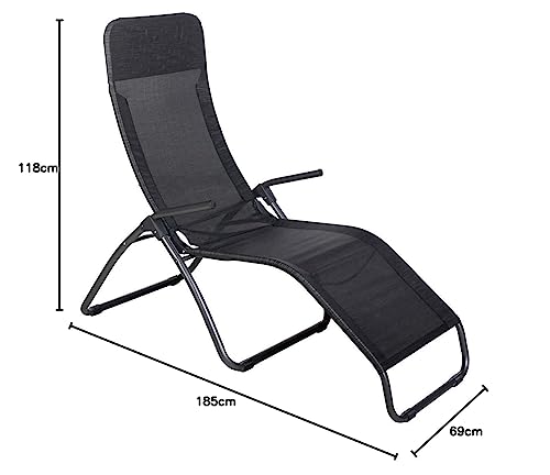 - HOCHWERTIGE MATERIALIEN: pulverbeschichteter Stahl und strapazierfähige Textilbespannung aus wetterfestem und UV-Beständigem Suntex (100% Polyester) machen die Liege witterungsbeständig