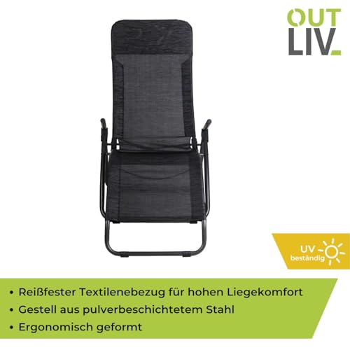 OUTLIV. Brada Bäderliege aus pulverbeschichtetem Stahl und Suntex (Outdoorstoff) zusammenklappbar | bis 120 kg | für Garten oder Pool, Gartenliege, Relaxliege, Wellness Bäderliege, (Anthrazit)