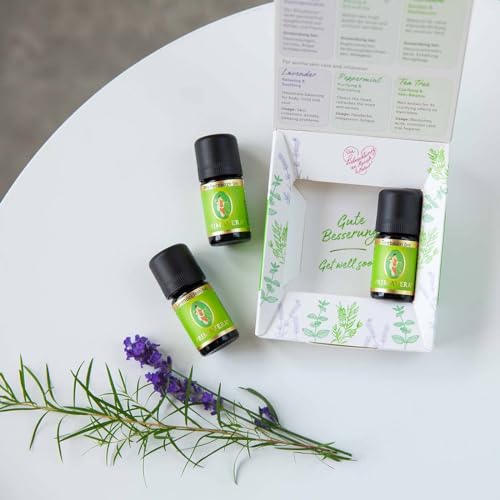 PRIMAVERA ätherische Öle Set Duftende Hausapotheke – Geschenkbox 3 x 5 ml Lavendel fein, Teebaum, Pfefferminze – Aromaöl, Duftöl, Aromatherapie, Geschenke – vegan