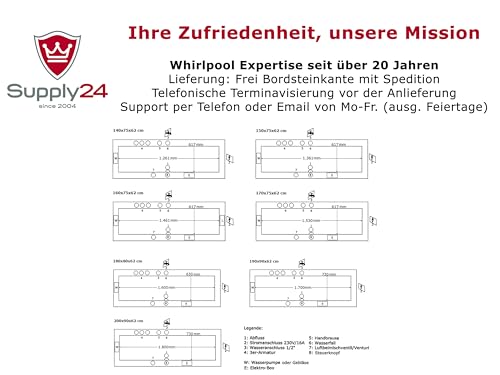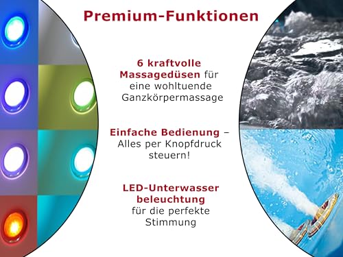 - Made in Germany: Dies bedeutet für Sie hohe Qualität und die Sicherheit, Ersatzteile auch nach Jahren nachbestellen zu können. Verwechseln Sie unseren Whirlpool nicht mit Whirlpools, die ähnlich wie dieser aussehen. Diese beschränken sich meist nur auf ein optisch ähnliches Design, aber es gibt gravierende Unterschiede in der Herstellung, Qualität und Langlebigkeit. Weiterhin wird jeder Whirlpool vor Versand einer Funktions- und Dichtigkeitsprüfung unterzogen.