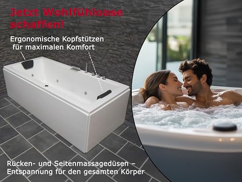 Entspannung pur: Whirlpool Badewanne Venedig mit 6 kraftvollen Hydrojet Massagedüsen
