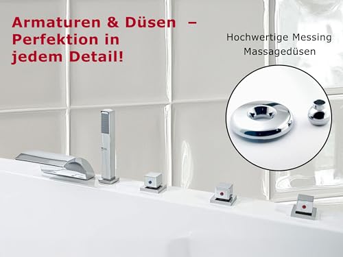 - 6 kraftvolle verchromte Hydrojet Massagedüsen sorgen für eine optimale Massage und Entspannung im heimischen Badezimmer