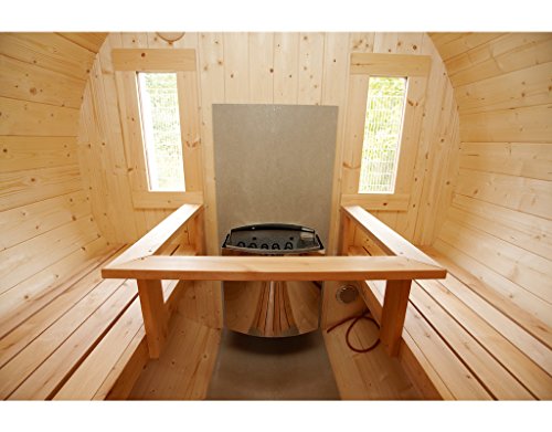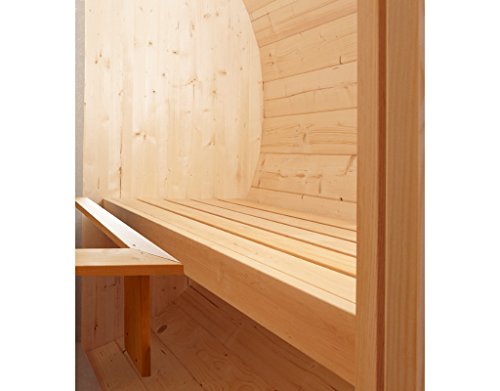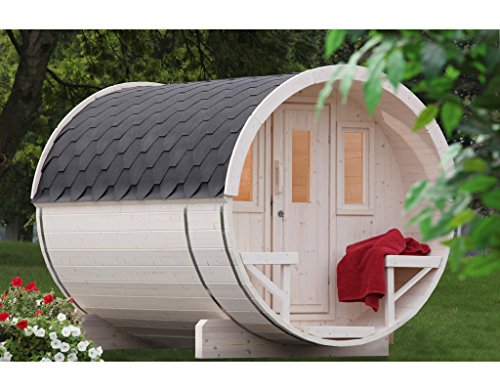 mittelgroßes induviduelles Saunafass zur Selbstmontage mit einer Länge von 280 cm aus der Premium-Serie von Wolff.Technische Details Wolff Finnhaus Saunafass 280 Bausatz: Außenmaß (B x T): 200 x 280 cm Schindeln: 6-Eck einfarbig schwarz Grundfläche: 5,7 qm umbauter Raum: 8,8 cbm Vordach: 57 cm Saunaraum: 210 cm Gewicht: ca. 680 kg Fenster: 2 Stück feststehende Fenster, Einbaumaß 20,5 x 57,9 cm Tür: Einzeltür, Leimholz, lichtes Maß 50,2 x 156,0 cm Bänke: inkl. 2 Sauna-Spezialsitzbänke sowie 2 Stück auf der „Terrasse“ Saunabereich: inkl. Saunabänke, Saunatür, Ofenschutzgitter Dacheindeckung: einfarbige Bitumen-Dachschindeln im Lieferumfang Fußboden: Massivholzbretter, Laufroste Unterkonstruktion: massives Vollholz, 2 Querstreben Ausführung: nordische Hölzer, naturbelassenProdukteigenschaften Wolff Finnhaus Saunafass 280 Bausatz: Wandelemente: Die Wände bei den Wolff Finnhaus Saunafässern bestehen aus extra starken 42 mm starken Bohlen. Die individuell geformten Fässer garantieren Ihnen ein sehr hohes Maß an Gemütlichkeit und sorgen für größtmöglichen Saunaspaß. Dieses Saunafass ist ein Bausatz. Sie montieren das Saunafass bauseits an der gewünschten Stelle in Ihrem Garten. Dach: Das Dach der Wolff Finnhaus Kota Serie besteht aus den gleichen Bohlen wie die Wände. Das gesamte Faß ist bauseits zu montieren und die Bohlen sind mit Hilfe von justierbaren Edelstahl-Bändern fest miteinander zu verbinden. Inklusive hochwertigen 6-eckigen Bitumendachschindeln. Boden: Der Fußboden bei dieser Kota ist aus Massivholz. Das Fass lagert auf sehr stabilen Unterkostruktionshölzern, die quer unter dem Fass verlaufen und einen sicheren Stand garantieren. Im Inneren des Saunafasses finden Sie stilechte Laufroste vor. Fenster: Durch die niedlichen Fensterflächen gelangt ausreichend Licht in den Innenraum des Saunafasses. Tür: Die formschöne Tür garantiert Ihnen mit Ihrem kleinen Durchgangsmaß ein